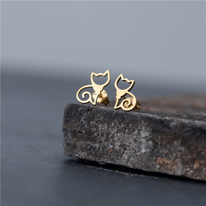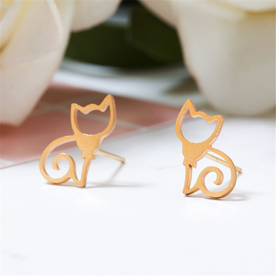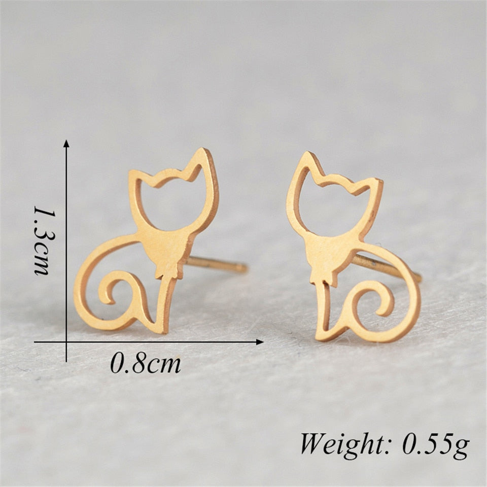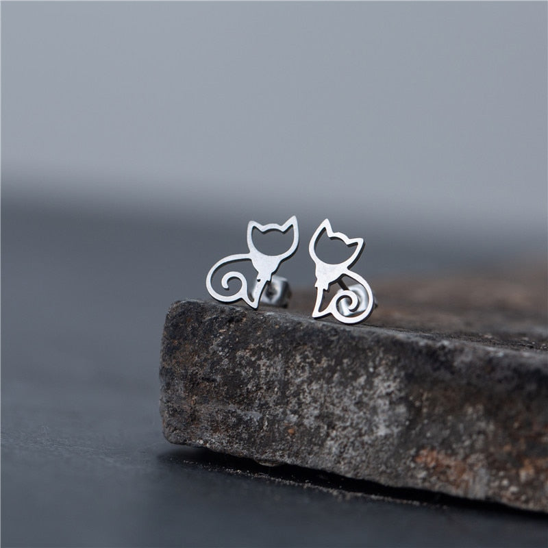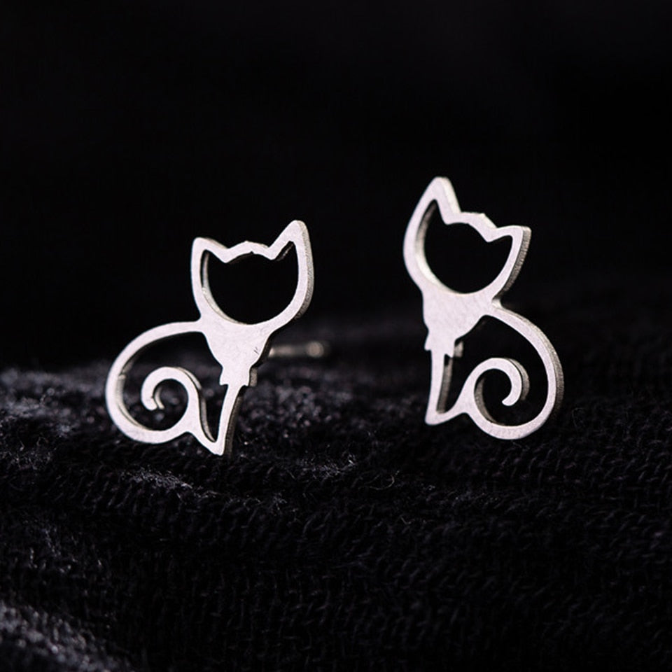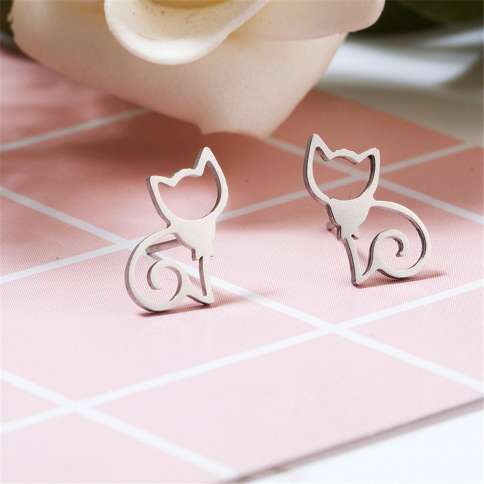 Elegant cat jewelry, stainless steel stud earring for cat lover