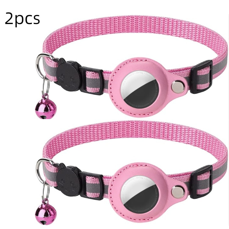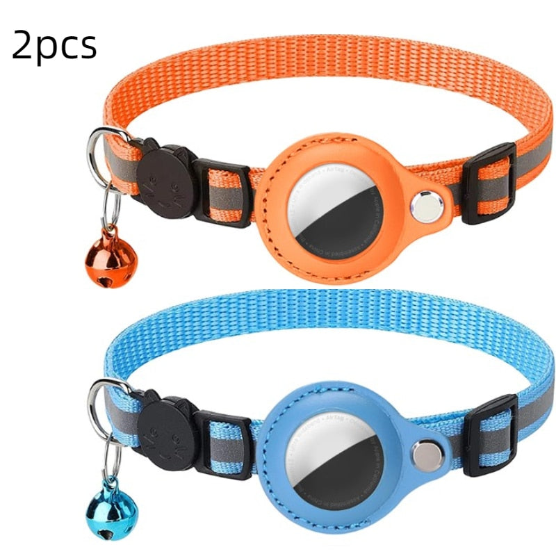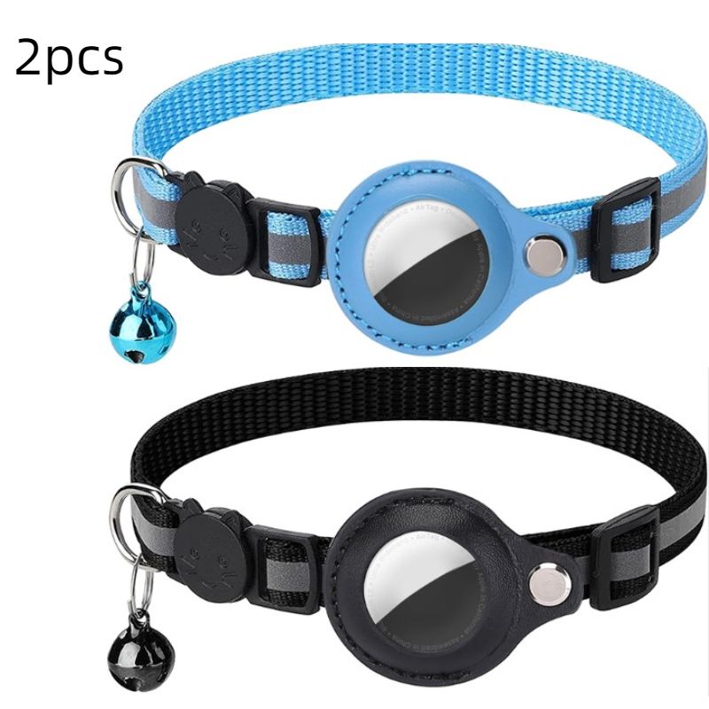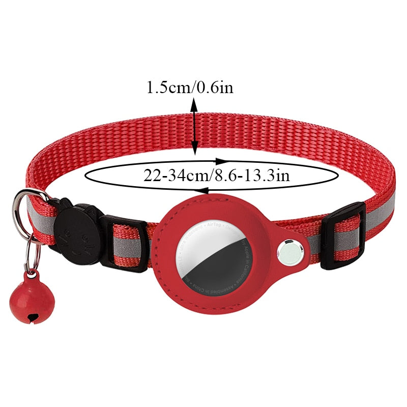 Reflective Anti-lost Pet Tracking Collar with Bell Pendant and Airtag Holder